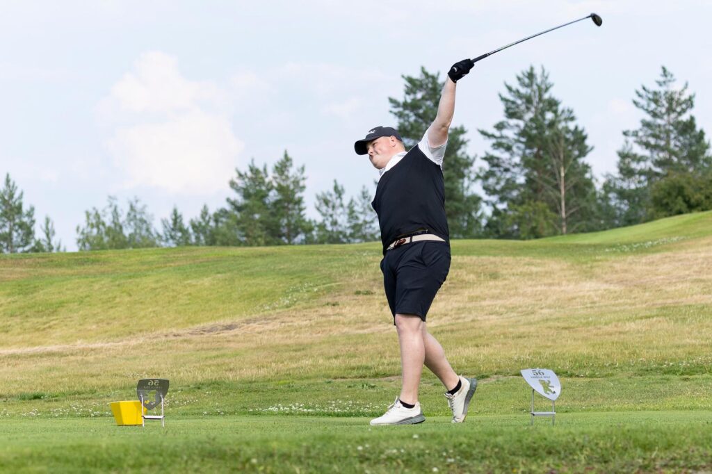 Tuusulan Golfklubia edustava Kosunen on pelannut golfia vuodesta 1992 lähtien, ja paragolf-kisoja hän alkoi kiertää vuonna 2020. Hänen tasoituksensa on 8,9. Bokskogenin kenttä on hänelle uusi tuttavuus, mutta harjoituskierroksen ja kolmen kisakierroksen myötä se tulee hänellekin tutuksi.
