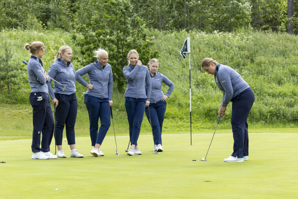 Tänään June Weckman (3/2), Emilia Väistö (1/0), Anastasia Hekkonen (7/6) ja Oona Kuronen (2/1) voittivat singel-ottelunsa. Sandra Palin ja Ada Huhtalapuolittivat pisteen foursome-ottelussa.